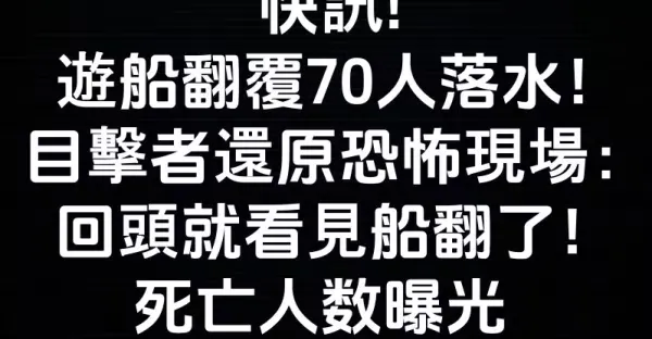 快訊/遊船翻覆70人落水!目擊者還原恐怖現場:回頭就看見船翻了!死亡人數曝光