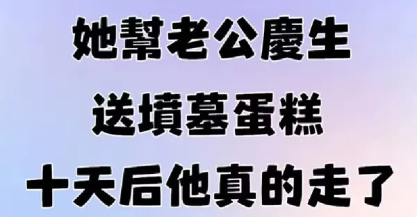 夫妻開玩笑!她幫老公慶生「送墳墓蛋糕」 十天後「他竟真的走了」:玩笑成真...