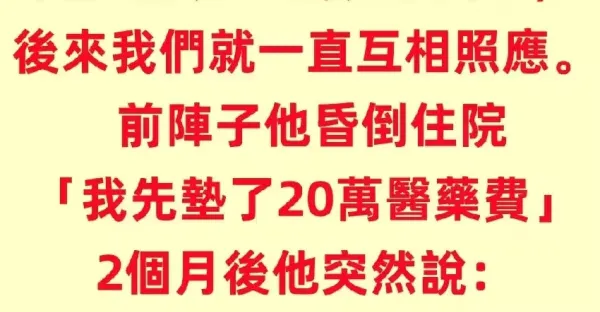 我離婚後一個人租房住,偶然發現60歲房東獨居,後來我們就一直互相照應。 前陣子他昏倒住院「我先墊了20萬醫藥費」,2個月後他突然說:「我家你可以免費住到老!」#接著他兒子出現了!