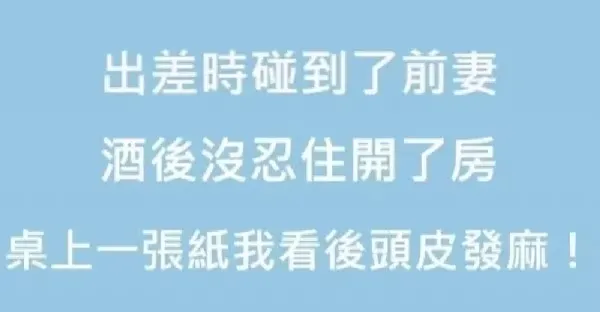 出差時碰到了前妻,酒後沒忍住開了房,隔天桌上有一張紙,我看了以後頭皮發麻!!