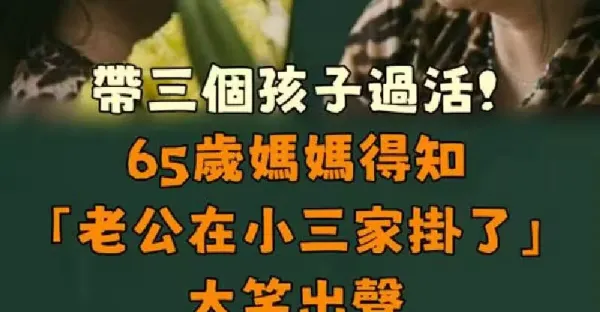 帶著三個孩子過活!65歲媽媽得知「老公在小三家掛了」大笑出聲 「丈夫喪禮上」開口第一句全場哭了…