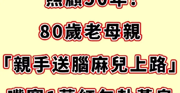 照顧50年! 80歲老母親 「親手送腦麻兒上路」 嘴塞1萬紅包赴黃泉