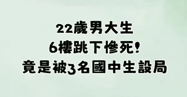 快訊/22歲男大生6樓跳下慘.死!竟是「被3名國中生設局」內幕曝光....