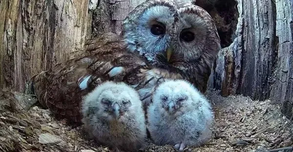 偷放孤兒雛鳥進窩,貓頭鷹夫婦見巢里多出幾隻幼鳥,反應令人動容