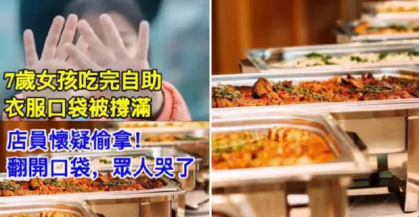 7歲女孩吃完自助,衣服口袋被撐滿,店員懷疑偷拿!翻開口袋,眾人哭了...