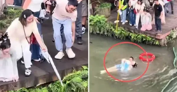 女遊客景區「不慎落水」,陌生小伙「下水施救」不料令人噁心一幕發生了~