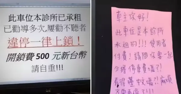 診所月租車位屢被霸占!貼公告「違停上鎖」反被嗆,網教「一招反制」車主哭著來道歉