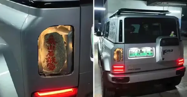 路見前車保險杆「塞了顆寫字石頭」!他PO網直言「好新奇」,老司機急喊:離這輛車越遠越好!