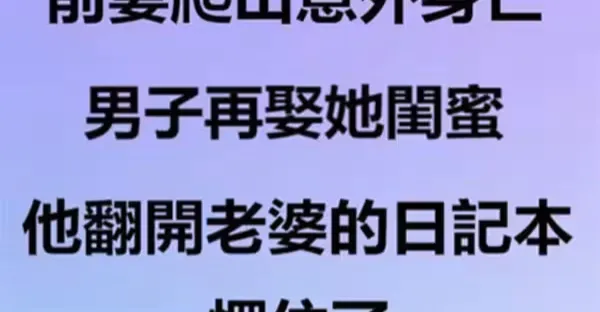 前妻爬山意外身亡,男子再娶她閨蜜,他翻開老婆的日記本愣住了!