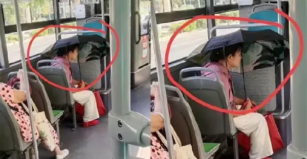 中午公車上驚現「遮陽傘」大姐! PO網吐槽後,網友放大照片第3秒集體道歉