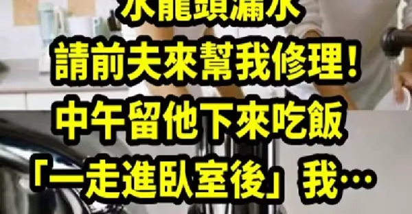 水龍頭漏水請前夫來幫我修理!中午留他下來吃飯「一走進臥室後」我…