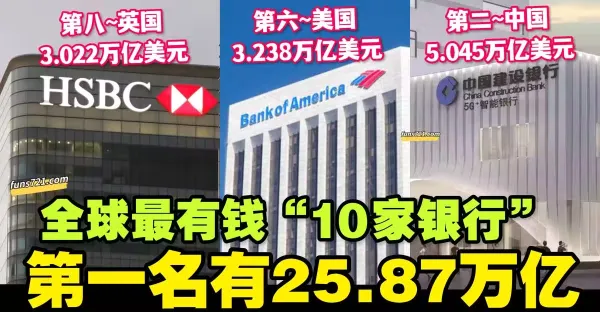 全球最有錢「10家銀行」, 第一名有25.87萬億資產
