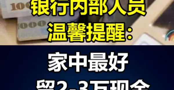 銀行內部人員溫馨提醒:家中最好留2至3萬現金,關鍵時刻有大用處