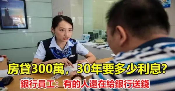房貸300萬,30年要多少利息?銀行經理:別再傻傻的「白送錢」了