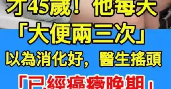 才45歲!他每天「大便兩三次」, 以為消化好,醫生搖頭「已經癌症晚期」,4個異常沒注意!