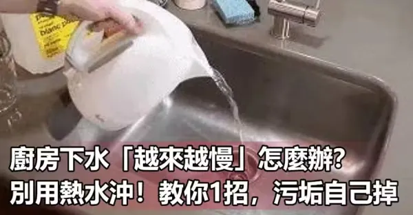 廚房下水「越來越慢」怎麼辦?別用熱水沖!教你1招,污垢自己掉!