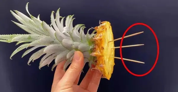 鳳梨吃完,鳳梨頭不要扔,插3根牙籤,放在家裡太棒了,全家人都誇好!