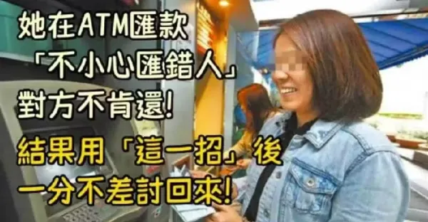 她在ATM匯款「不小心匯錯人」!對方不肯還!結果用「這一招」後....一分不差討回來。