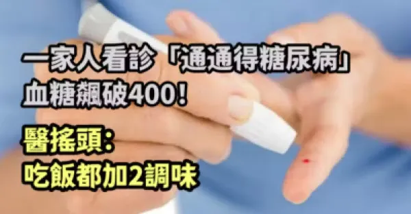 一家人看診「通通得糖尿病」 血糖飆破400!醫搖頭:吃飯都加2調味