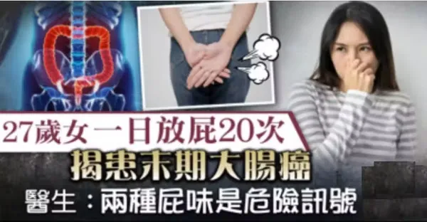 27歲女一天放20次屁 「就醫已是癌末」醫警告:2種屁味要小心
