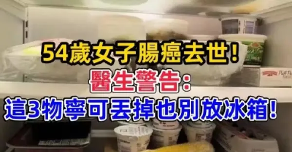 54歲女子腸癌去世!醫生警告:這3物寧可丟掉也別放冰箱!