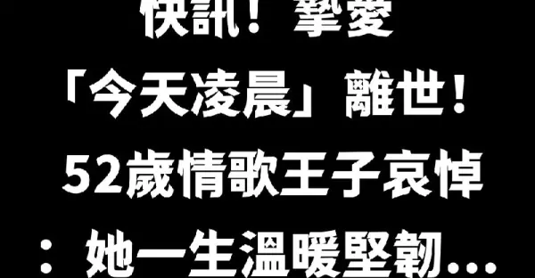 快訊/摯愛「今天凌晨」離世! 52歲情歌王子哀悼:她一生溫暖堅韌...