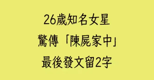 26歲知名女星驚傳「陳屍家中」最後發文留2個字