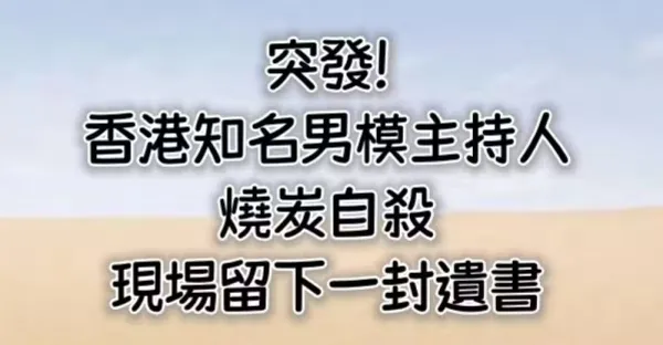 突發!香港知名男模主持人燒炭自殺,現場留下一封遺書