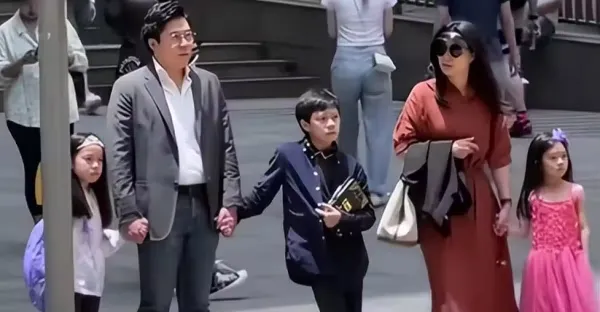 郭晶晶一家五口步行逛街,小女兒穿著鮮艷長發如瀑,顏值超越媽媽