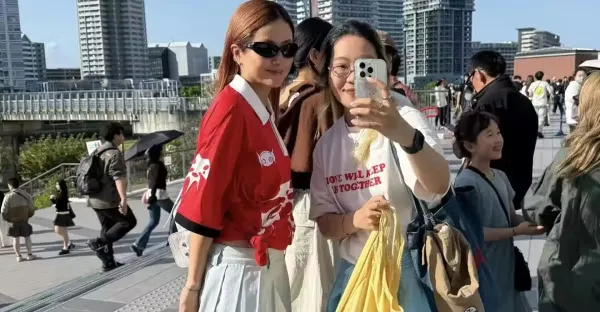 51歲徐濠縈現身日本,和未來女婿同框,穿衣另類,短裙和襪子好醜