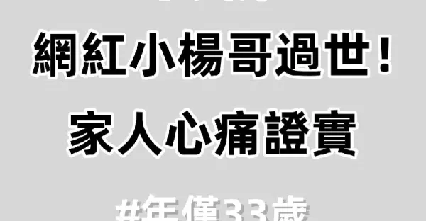 快訊/網紅小楊哥驟逝!年僅33歲 家屬悲痛證實噩耗