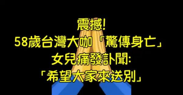 震撼!58歲台灣大咖「驚傳身亡」 女兒痛發訃聞:「希望大家來送別」