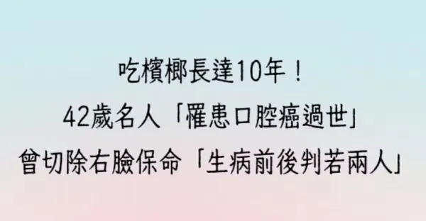 吃檳榔長達10年!42歲女名人「罹患口腔癌過世」 曾切除右臉保命「生病前後判若兩人...」
