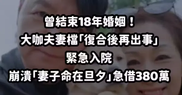 曾結束18年婚姻!TVB 大咖夫妻檔「復合後再出事」緊急入院 崩潰「妻子命在旦夕」:急借380萬