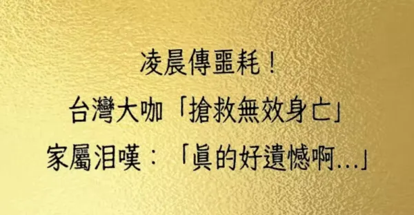 凌晨傳噩耗!台灣大咖「搶救無效身亡」 家屬淚嘆:「真的好遺憾啊.......」