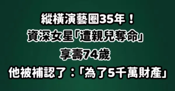 縱橫演藝圈35年!資深女星「遭親兒奪命」享壽74歲 他被補認了:「為了5千萬財產......」