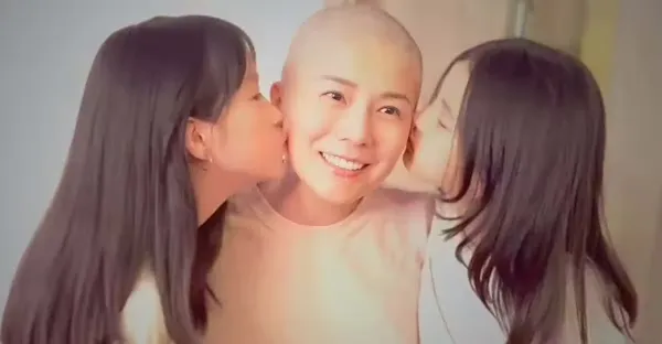 吳文忻進入癌症末期,兩個女兒哭著為媽媽剃頭,不舍親吻媽媽