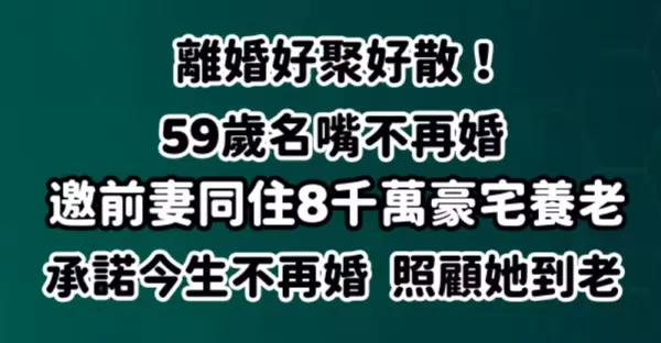 離婚好聚好散!59歲名嘴不再婚「邀前妻同住8千萬豪宅養老」承諾今生不再婚,照顧她到老...