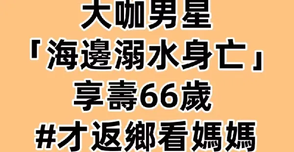 午間快訊/大咖男星「海邊溺水身亡」享壽66歲 #才返鄉看媽媽!