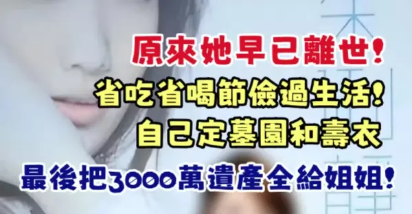 原來她早已離世!省吃省喝節儉過生活,自己定墓園和壽衣,最後把3000萬遺產全給姐姐