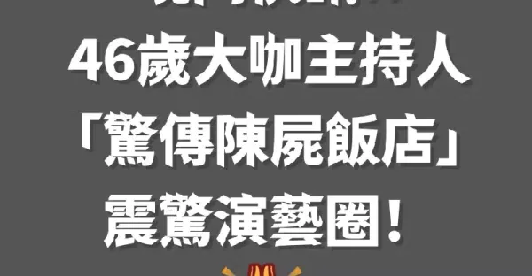 晚間快訊/46歲大咖主持人「驚傳陳屍飯店」震驚演藝圈!