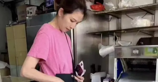 51歲蔡少芬在香港,去了一家麵包店,打扮一言難盡,好像家庭主婦