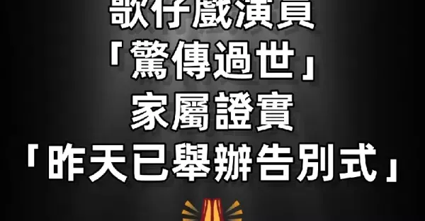 歌仔戲演員「驚傳過世」!家屬證實「昨天已舉辦告別式」