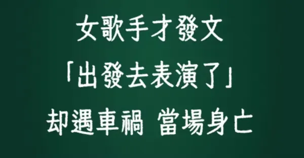 女歌手才發文「出發去表演了」 卻遇車禍 當場身亡!
