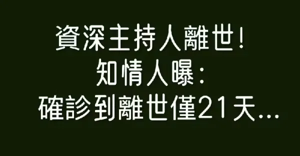 資深主持人離世! 知情人曝:確診到離世僅21天...