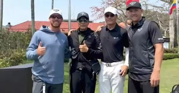 苗僑偉現身澳門參加高爾夫比賽,摟性.感美女拍照,比任達華高半頭