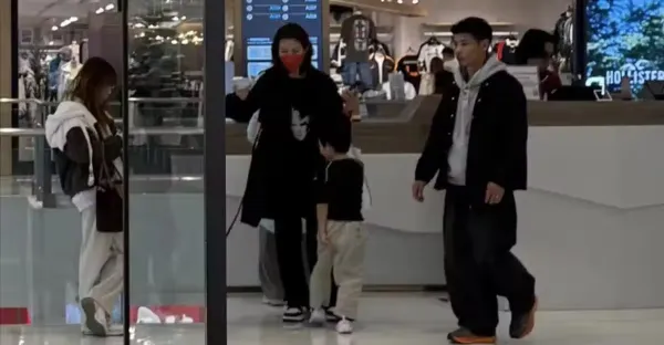 52歲蔡少芬香港西九龍逛商場,一邊牽著兒子,一邊和女兒聊天,畫面非常溫馨
