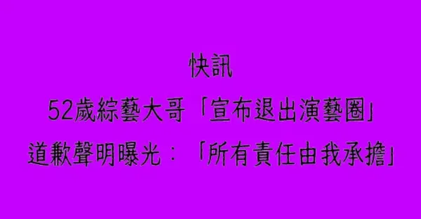 快訊/ 52歲綜藝大哥「宣布退出演藝圈」道歉聲明曝光:「所有責任由我承擔」