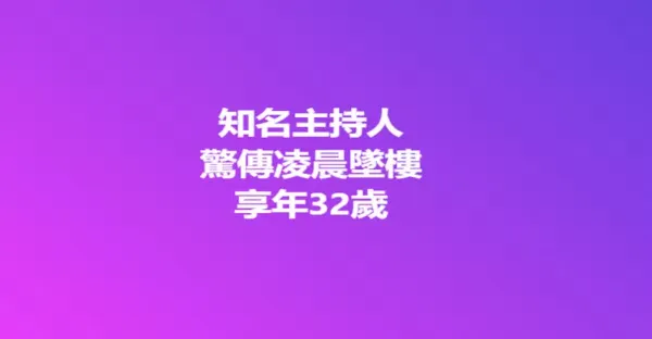 知名主持人驚傳凌晨墜樓,享年32歲…