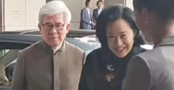66歲朱玲玲狀態好,和百億富豪老公參加婚宴,夫妻感情甜蜜